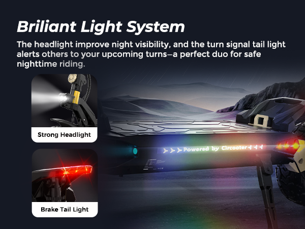 The headligt improve night visibility, and the turn signal tail light alerts others to your upcoming turns--perfect for safe nighttime riding.