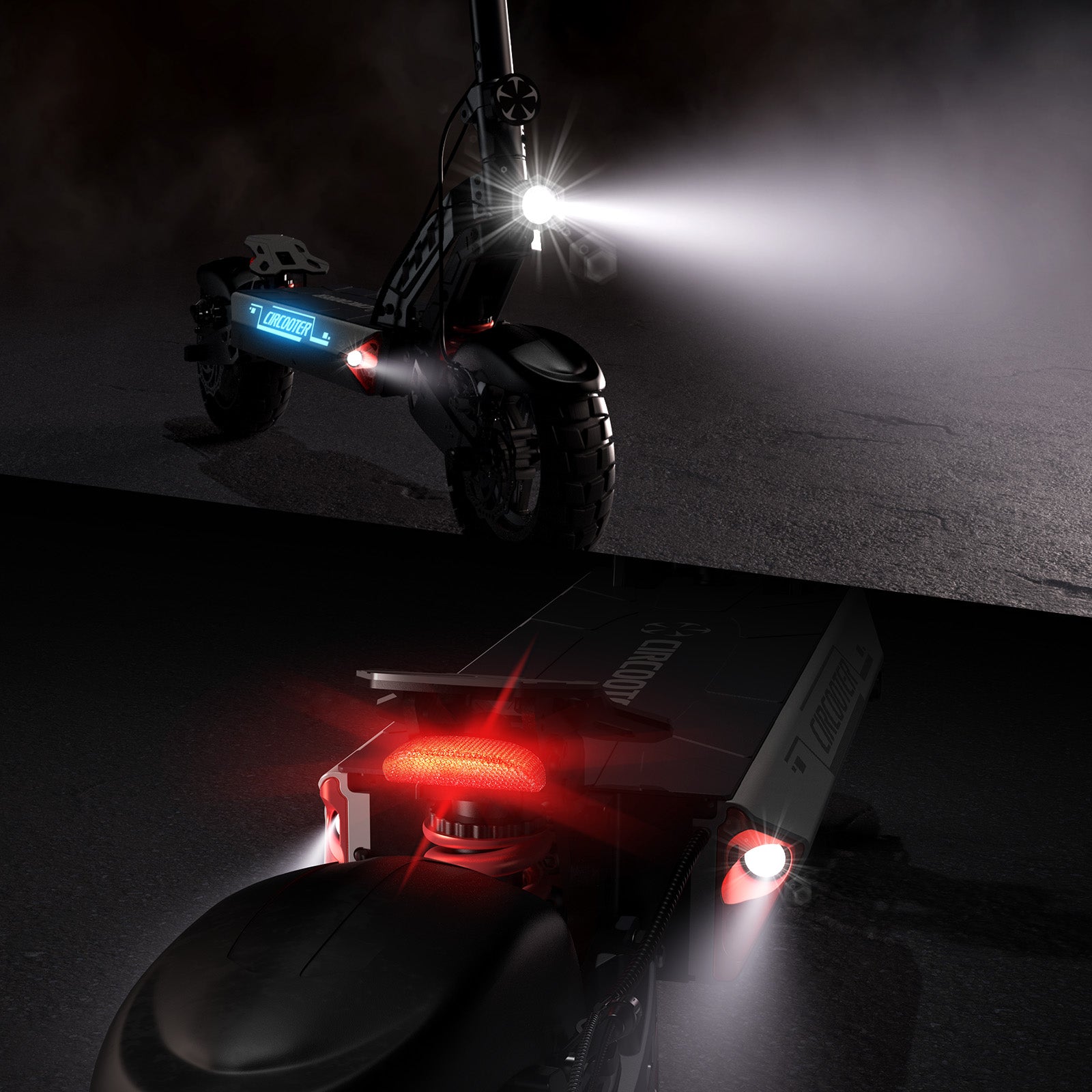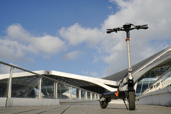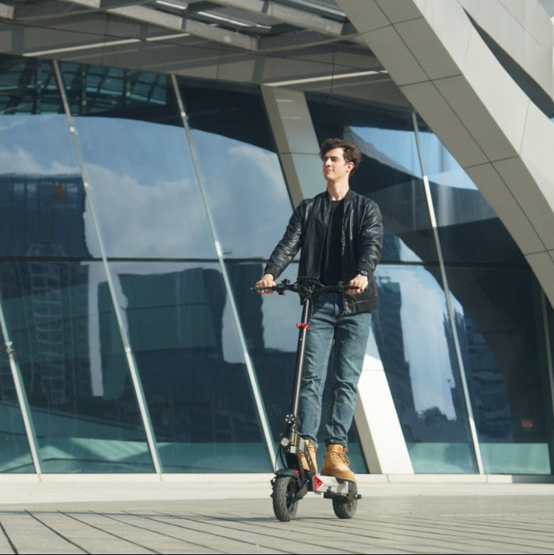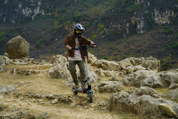 Equipped with 10" air-filled all-terrain tires, this scooter glides smoothly over city streets, grips slick rainy roads, and powers through rugged off-road trails. It effortlessly conquers steep hills up to 30% grade.