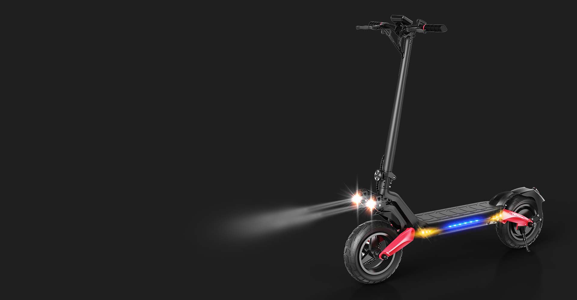 Yes, this electric scooter is also equipped with a 360° lighting system that includes a bright headlight, dual side moonlights, front and rear turn signals, and a brake light, ensuring that you can always see and be seen at night for all-around safety.