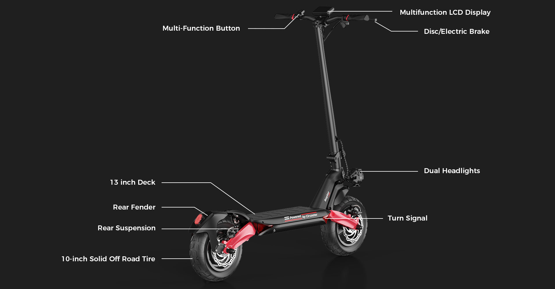 The circooter is built to withstand heavy use while still providing a nimble and comfortable ride. Its advanced front and rear suspension system ensures a smooth and adaptive ride, no matter what kind of terrain you encounter.