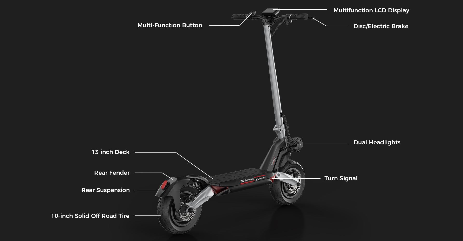 Equipped with powerful 1600W dual motors, the Circooter boasts impressive acceleration and can easily ascend hills with a 30% grade at high speeds. Additionally, its enhanced traction allows for greater stability and safety on loose or slick surfaces.