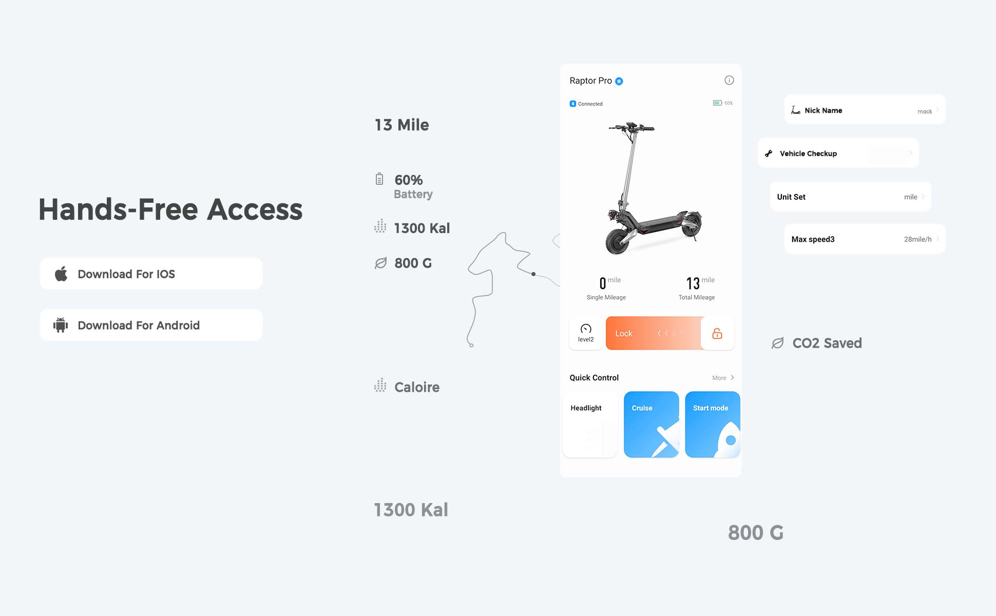 With the 11 inch 11" Pneumatic Off Road Tires that contribute to stable traction and agile movement, you’ll conquer all sorts of challenging terrains underneath your feet readily.
