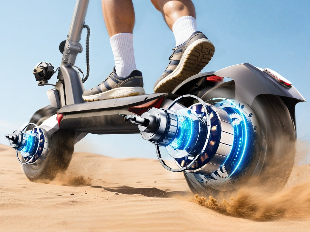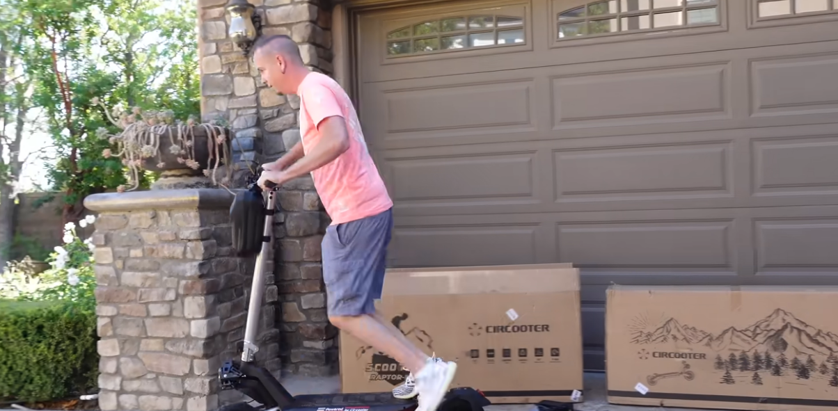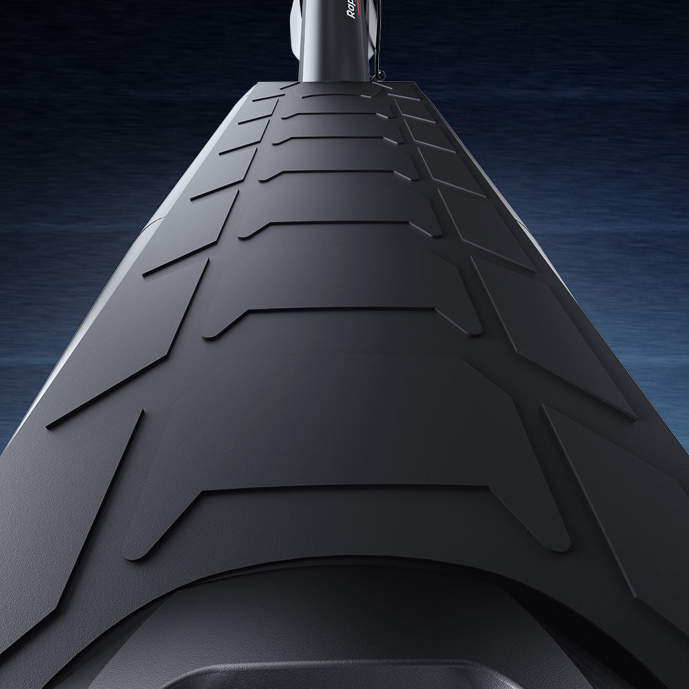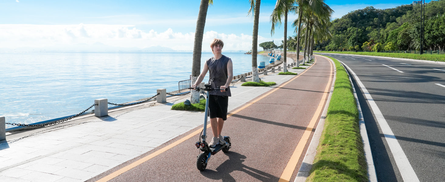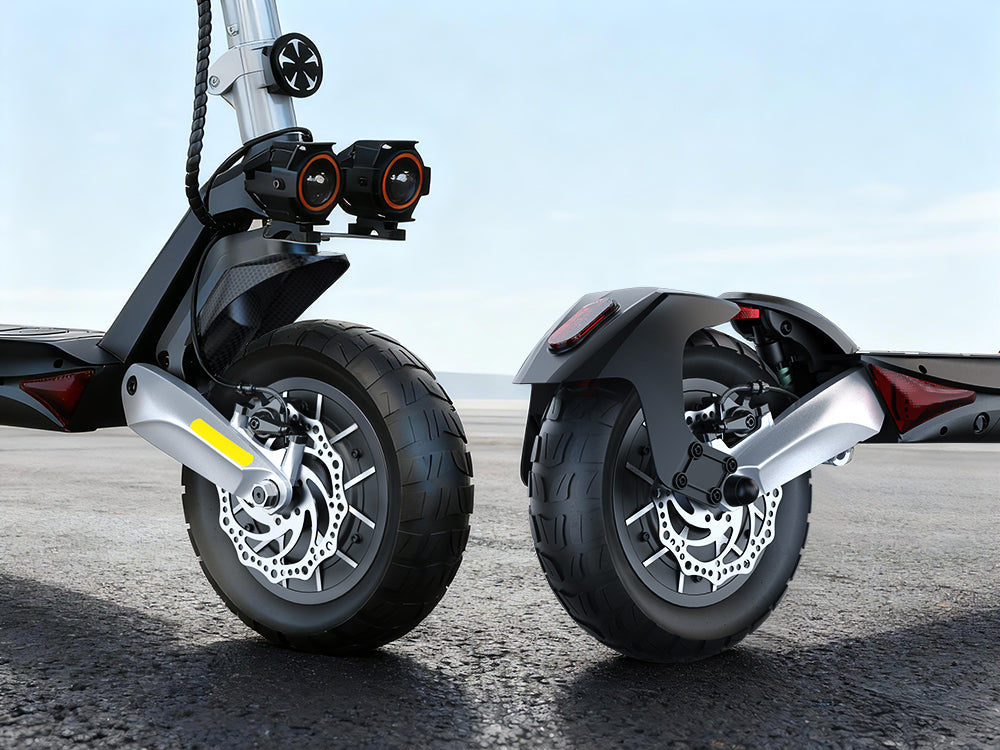 This electric scooter features an 8-inch ground clearance, allowing it to pass quickly through shallow puddles. It is rated IPX4 for splash resistance, but we still recommend avoiding heavy rain and deeper water.